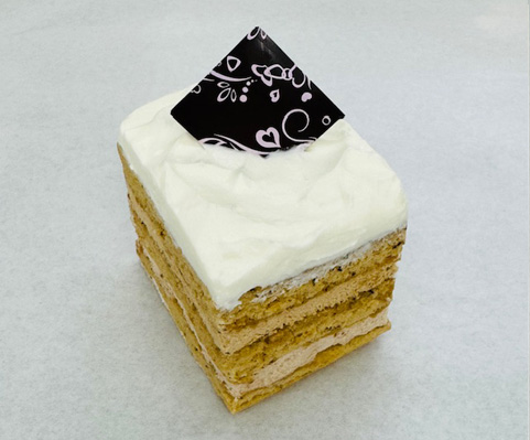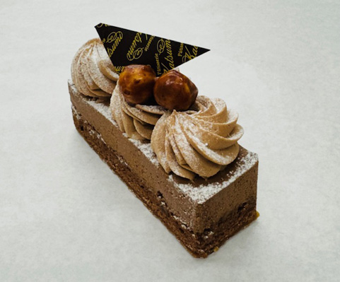 濃厚なチョコレートクリームと香ばしくキャラメリゼしたヘーゼルナッツのケーキです。